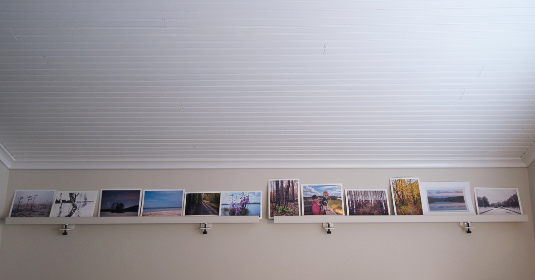 Olen tulostanut joka kuukausi kuukauden kuvan seinälle, kuvaamaan vuoden kiertoa ja muistokuviksi hetkistä. Olen aikaisemmin tehnyt muistikirjaan pieniä tulosteita mustesuihkulla japaninpaperille. Leikannut sivuun kuvan kokoisen reiän ja liimannut kuvan reiän päälle. Näin sivusta ei tule kovin paksu ja kun kuvaa katsoo valoa vasten se on kuin paperidia.