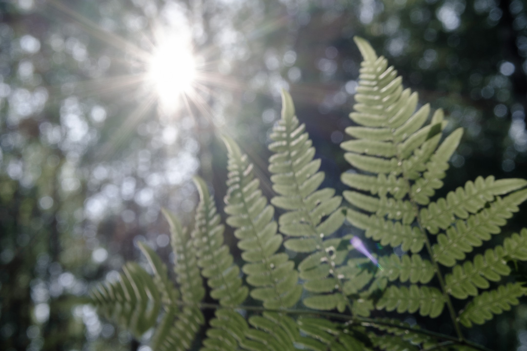 Makailla heinikossa, katsella saniaisten taivuttelua viilentävässä tuulessa, ilta-auringossa, lämmintä, ei hyttysiä, hiljaista.