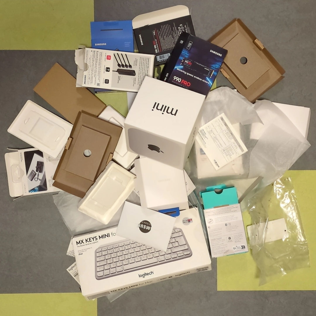Suomessa kaupoissa on kaikenlaista, mutta missään ei ole kaikkea. Tavaraa toimitti laskun maksun jälkeen Gigantti, Tector, Multitronic ja Apple.